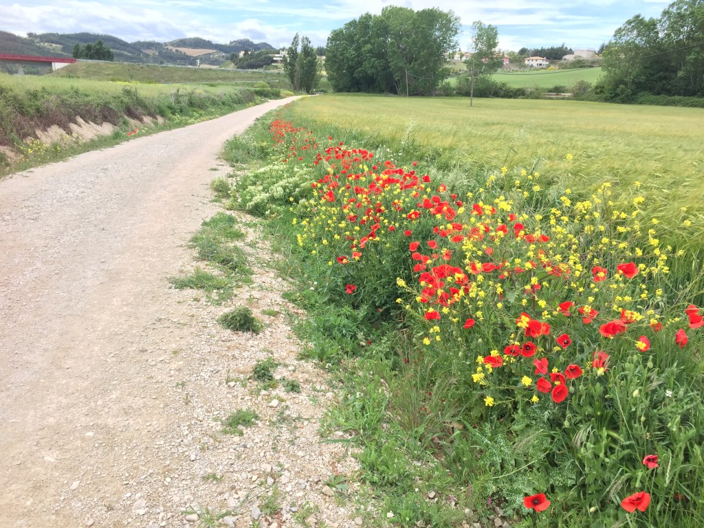Meet Natalia – an excellent example of the entrepreneurial spirit alive and well in Spain! In between studying her Chemistry, she has set up a lemonade stand just on the way into Obanos. As pilgrims pass, thirsty from their descent from Aldo del Perdón, Natalia offers ice cold home made lemonade for a donation only. She was making a fortune! The last few days have been full of surprises and inspirations. Camino friend Trevor told me before I left Melbourne about the poppies. Trevor, this one is for you. They are beautiful – vibrant red, and bountiful amongst the wheat.