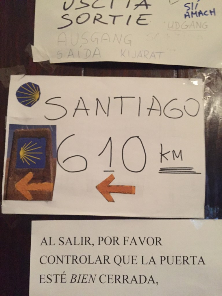 Tomorrow we are sending our packs to Azofra. Only 16 km away but I think it’s all I can manage. I am learning to listen. Ahh, now about the Spanish kilometres… I truly believe they run at about 1.5 to ours. This means when you see a sign or read a map that says it’s 10km to the next town, really this is likely to be around 15. And the last 3-5 km will take you hours. It’s one of the strangest phenomena of the Camino! We saw this sign at the Albergue in Logroño. By my reckoning we have walked around 185 km. That’s inspiring, no?