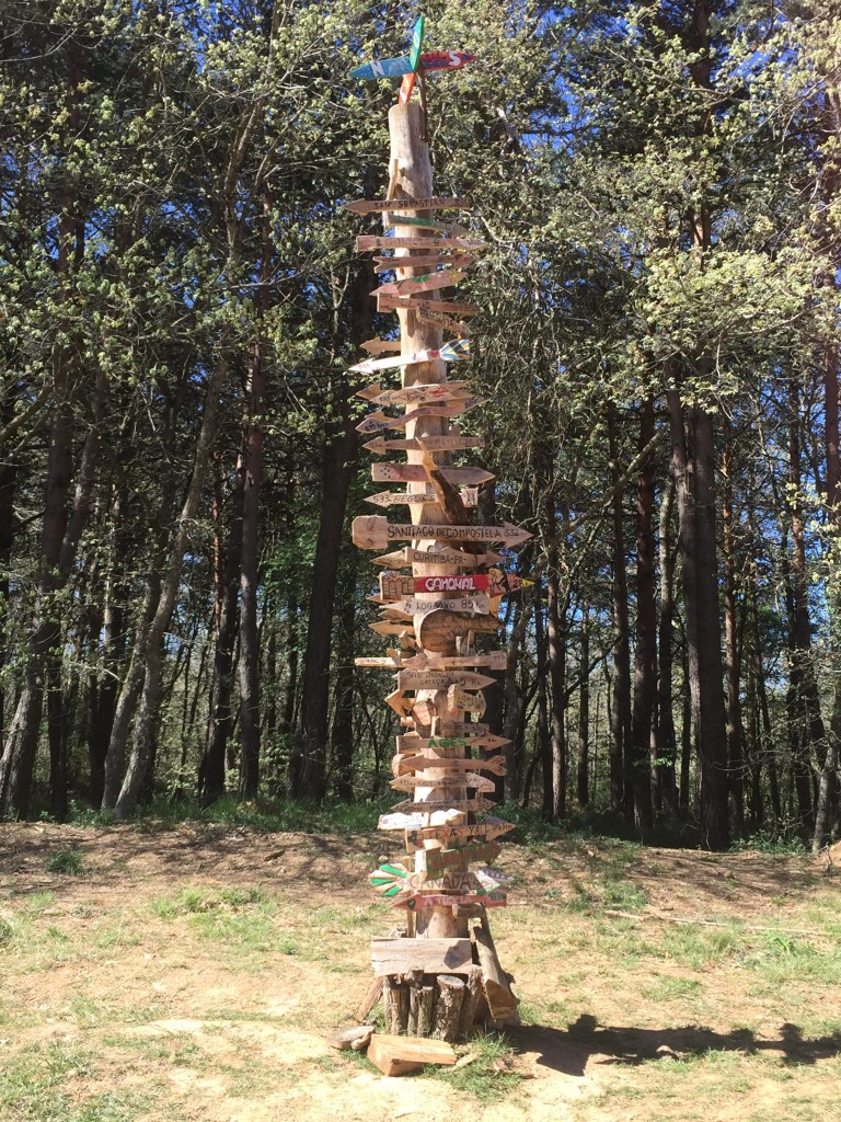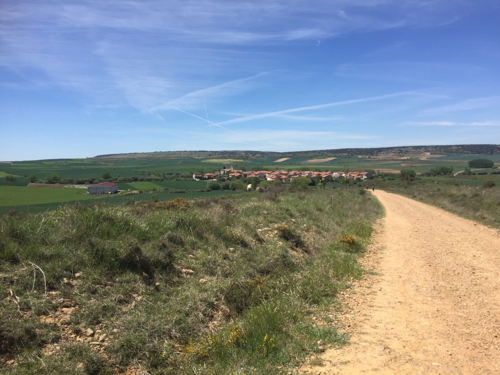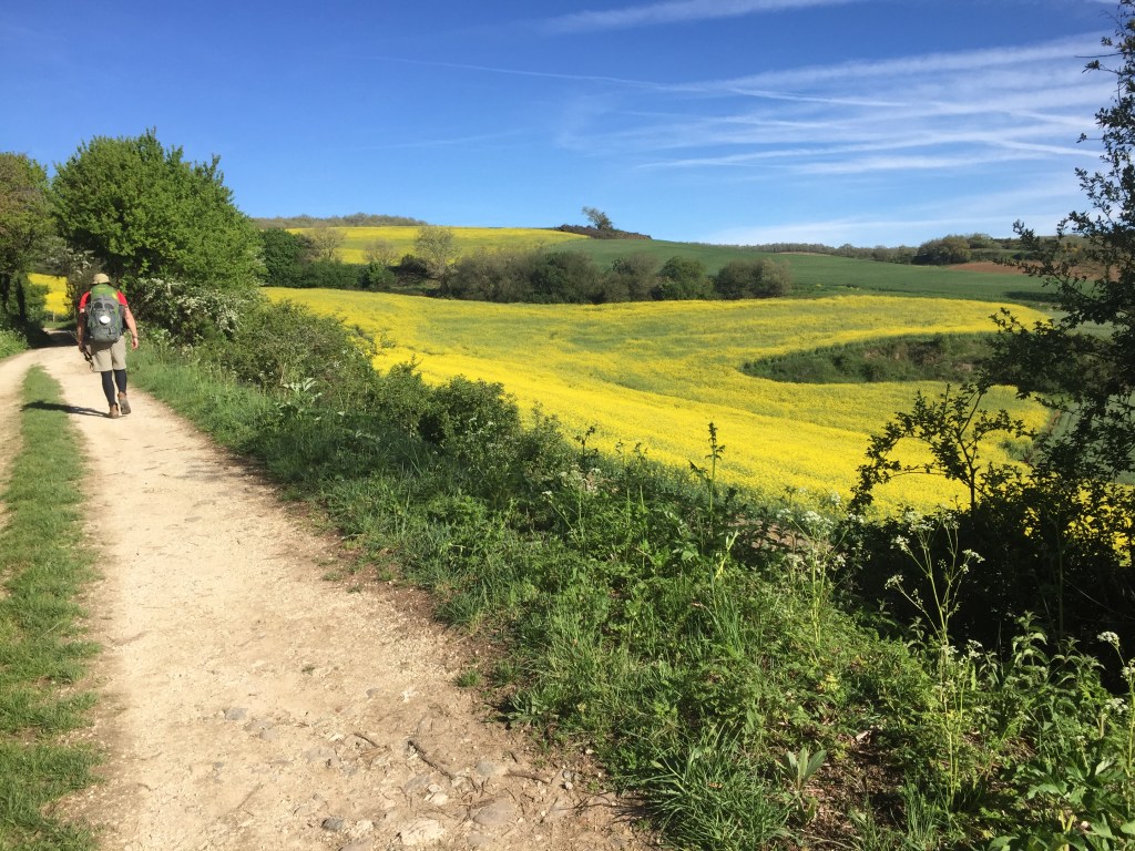 But I kept walking! It seems they weren’t waterproof after all. After the storms they were sodden so I hung them from my pack to dry and wore my hiking sandals instead. These run a very close second in the ugliness stakes. I was thinking about how clever this whole backpacking thing is if you do it right. Most things can actually have more than one use. My pack carries my clothes and doubles as a traveling clothes line for wet things. My buff (this is the ‘headscarf ‘ you see me wearing in some photos) can be used as a hand warmer, a night mask (to shield eyes from dormitory lights and keep your earplugs in place!), and a thing to keep an ice pack around an ankle! Safety pins make great clothes pegs. I’m loving the novelty of it all. The walk from Tosantos to Arges and Arges to Burgos was quite pretty. Some steep bits but the hills somehow seem and feel easier (seems you were right John Briscoe!). Beautiful fields of bright yellow (canola?) and wheat, still green, as far as the eye can see. The sun shone and skies were clear and azure.