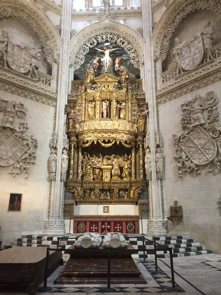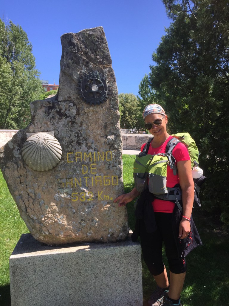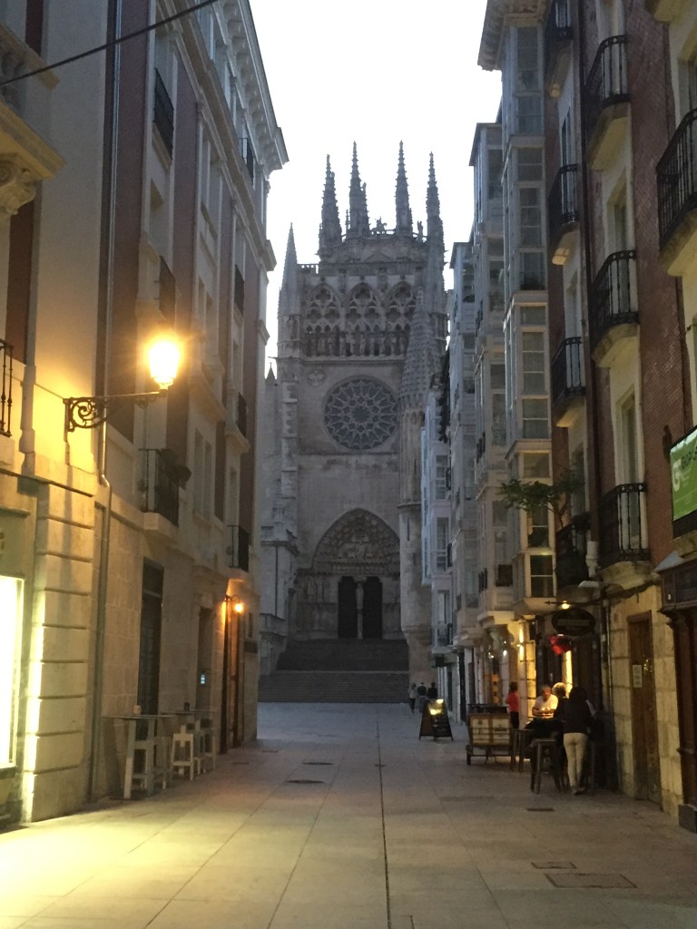 …and your cathedral was not too shabby either! After 14 days of walking it was time for a rest day in the beautiful city of Burgos. Checking into a real hotel was a treat. No snorers, private bathroom. My sleeping bag looked forlorn in the corner of the room wondering why it was not getting its daily outing. Slept in until after 8! The photo above was the view from our window. The Cathedral was stunning, of course.