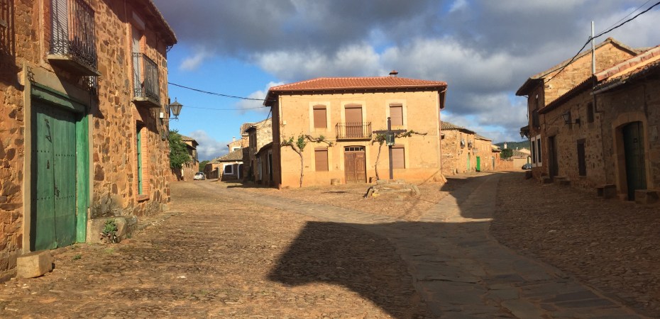 The walk from Astorga to Molinaseca was spectacular. Where do I begin? Well maybe in the beautiful township of Castrillo de los Polvazares. On the alternative route from Astorga we visited this quaint little village. First curious thing I noticed was the lack of people. Maybe not so unusual for 8.00am in Spain! So, walking through the village I met a beautiful spaniel who just knew I needed a cuddle. 🙂 I sat to admire the church (which was closed, of course…) – check out the stork nest on the right…