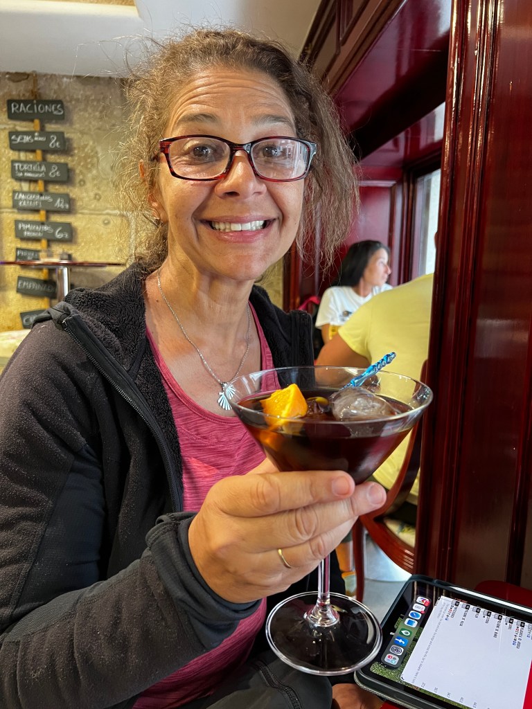 We holed up in a vermut bar to get out of the rain! ( and you can tell by my hair we got caught in the rain )