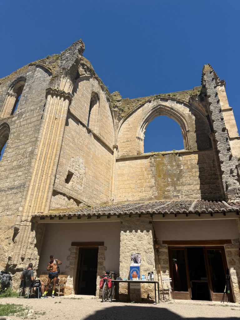 We are on the meseta so distance between towns is long and very little shade. On the way into catrojeriz we called into the abandoned monastery of san Anton.