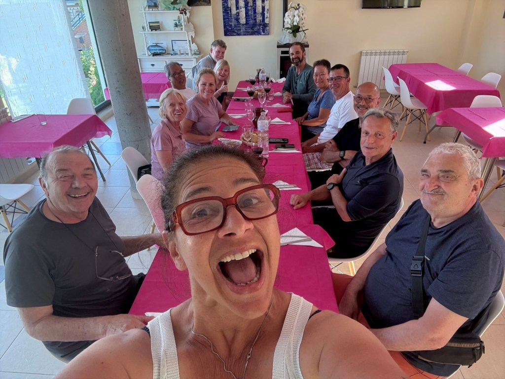 After showers, we adjourned to the garden bar. I met some interesting pilgrims. Pierre- a Frenchman living in Belgium has a healthy distrust of muslims and is doing Camino to assert his Christianity. Then an Hungarian couple who have migrated to Miami and who are now real estate agents who ‘flip houses’. They thought Kamala Harris was a joke, supposedly don’t like trump but we were’nt convinced. We advised them to identify as Hungarian